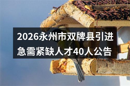 为深入实施新时代人才强县战略,集聚支撑和引领双牌高质量发展的各类人才,经县委、县政府研究同意,2026年面向社会公开引进一批教育、医卫急需紧缺人才。现将有关事项公告如下: