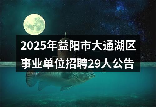 (一)招聘计划。本次大通湖区事业单位面向社会公开招聘事业编制人员29名,具体招聘岗位及要求详见《益阳市大通湖区2025年事业单位公开招聘工作人员职位表》(附件1)。