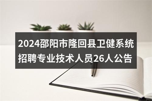 为进一步加强医疗卫生专业人才队伍建设,提高专业人员素质,满足我县卫生健康系统事业发展需求,根据《湖南省事业单位公开招聘人员办法》(湘人社发〔2019〕1号)、《做好事业单位公开招聘高校毕业生工作的若干措施》(湘人社规〔2024〕5号)、《邵阳市事业单位公开招聘人员实施细则》(邵人社发〔2019〕54号)和《隆回县事业单位公开招聘工作人员实施细则》(隆人社发〔2020〕19号)等文件精神,经研究决定面向社会公开招聘专业技术人员26名,其中县直医疗单位12名,乡镇卫生院14名,现就相关事项公告如下: