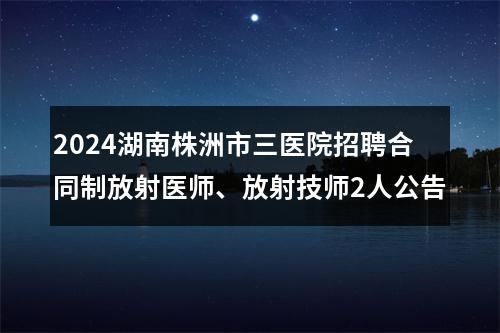 【2024湖南株洲市三医院招聘合同制放射医师、放射技师2人公告】相关岗位: