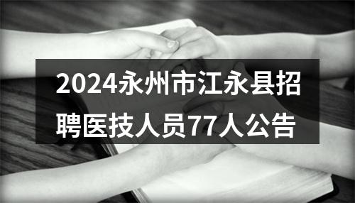 根据工作需要,经县委、县政府同意,报永州市人力资源和社会保障局批准,江永县2024年面向社会公开招聘医技人员77名,现将有关事项公告如下: