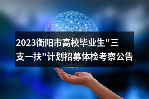 根据《衡阳市2023年高校毕业生"三支一扶"计划招募公告》,为做好衡阳市2023年高校毕业生"三支一扶"计划招募体检、考察,现就有关事项公告如下: