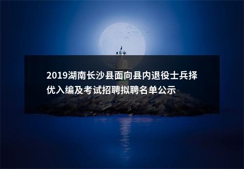 声明:专注 2019湖南长沙县面向县内退役士兵择优入编及考试招聘拟聘名单公示 相关岗位分析;专业指导面试技巧;保障就业成功概率。