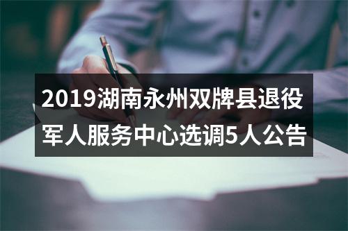 【2019湖南永州双牌县退役军人服务中心选调5人公告】相关岗位:
