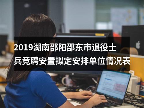 原标题:邵安发[2019]3号 2019年邵东市符合政府安排工作条件退役士兵竞聘安置拟定安排单位情况表