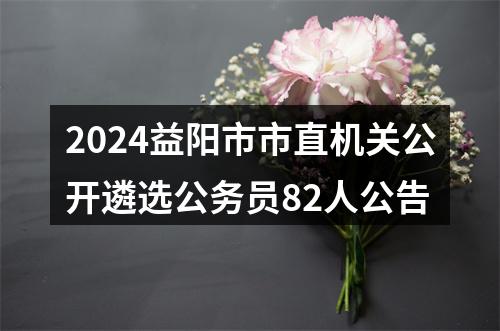 为加强市直机关公务员队伍建设,根据《公务员法》、《湖南省公务员转任实施办法》、《湖南省公务员公开遴选实施办法》等有关规定,益阳市委组织部决定开展2024年市直机关公开遴选公务员(含参照公务员法管理人员,下同)工作。现将有关事项公告如下: