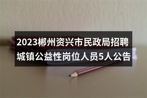 【2023郴州资兴市民政局招聘城镇公益性岗位人员5人公告】相关岗位: