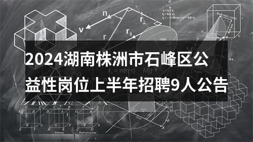 原标题:2024年株洲市石峰区公益性岗位上半年招聘公告