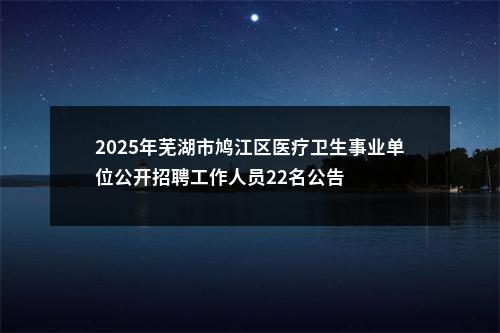 2025年度芜湖市鸠江区医疗卫生事业单位公开招聘工作人员22名。(详见附件)
