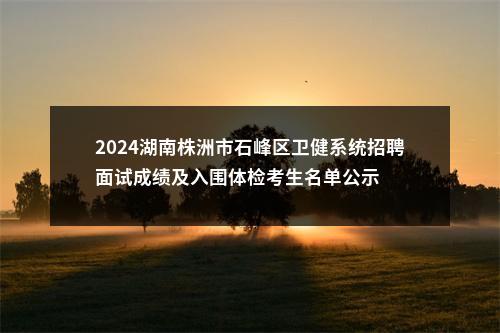 原标题:2024年株洲市石峰区卫健系统公开招聘事业单位工作人员面试成绩及入围体检考生名单公示